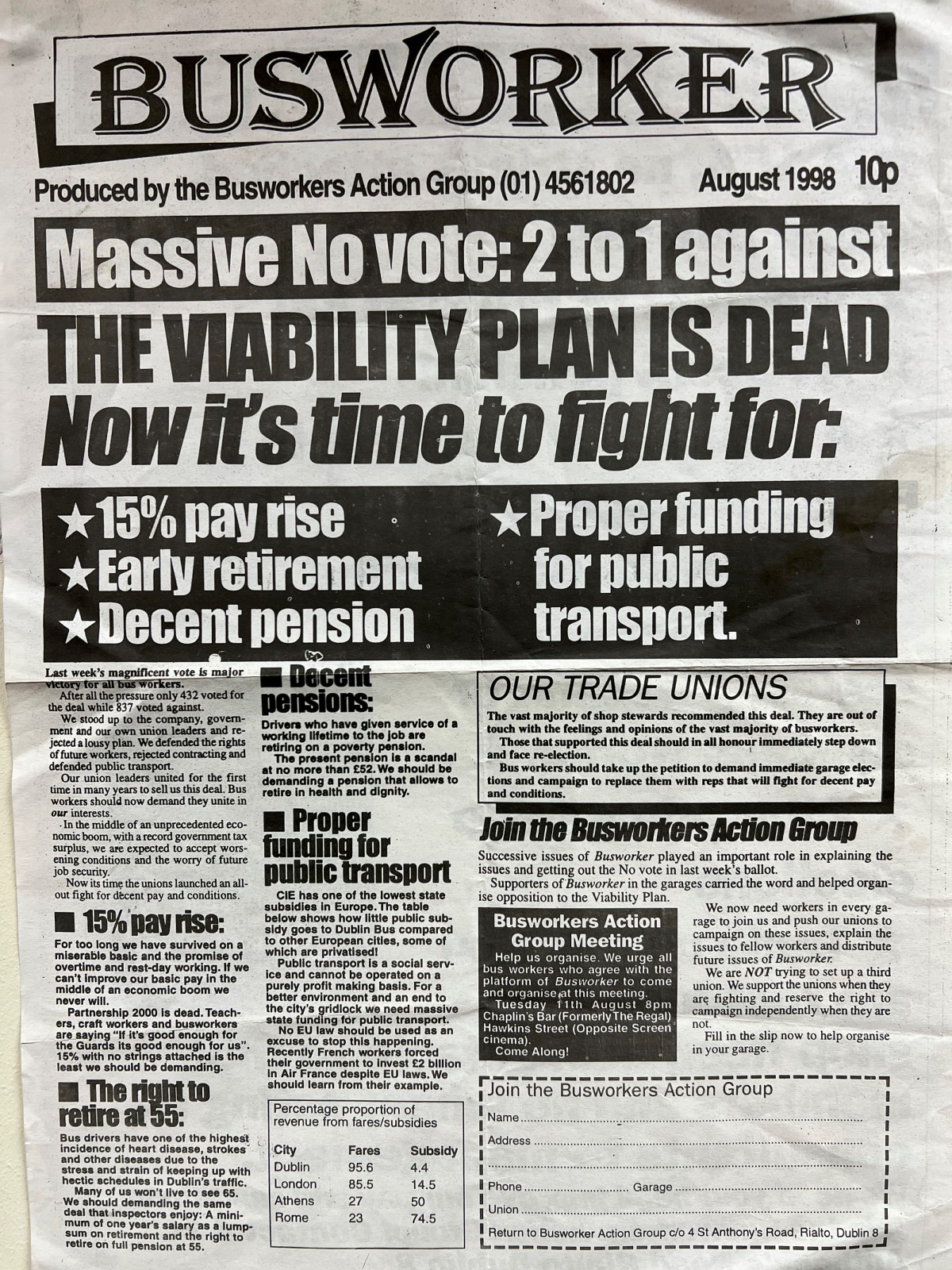 Busworker, August 1998, produced by the Busworkers Action Group.