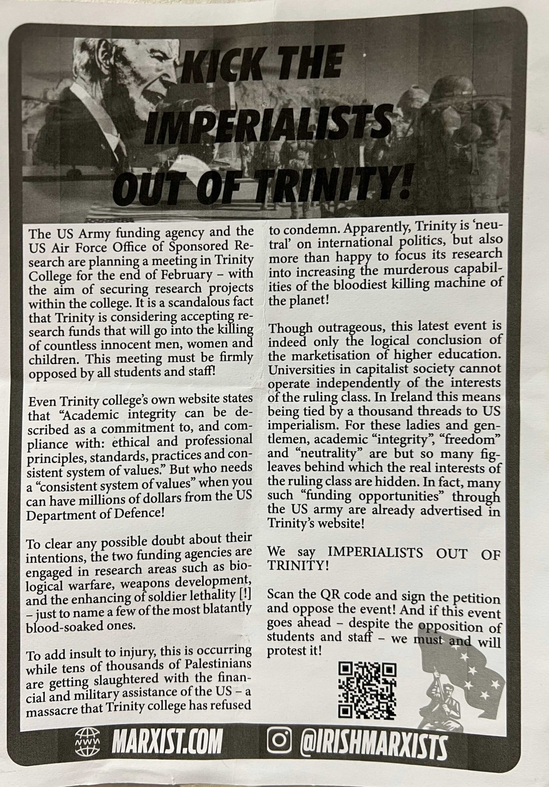 Kick The Imperialists Out Of Trinity! (2024 c.) — Revolutionary Communists of Ireland