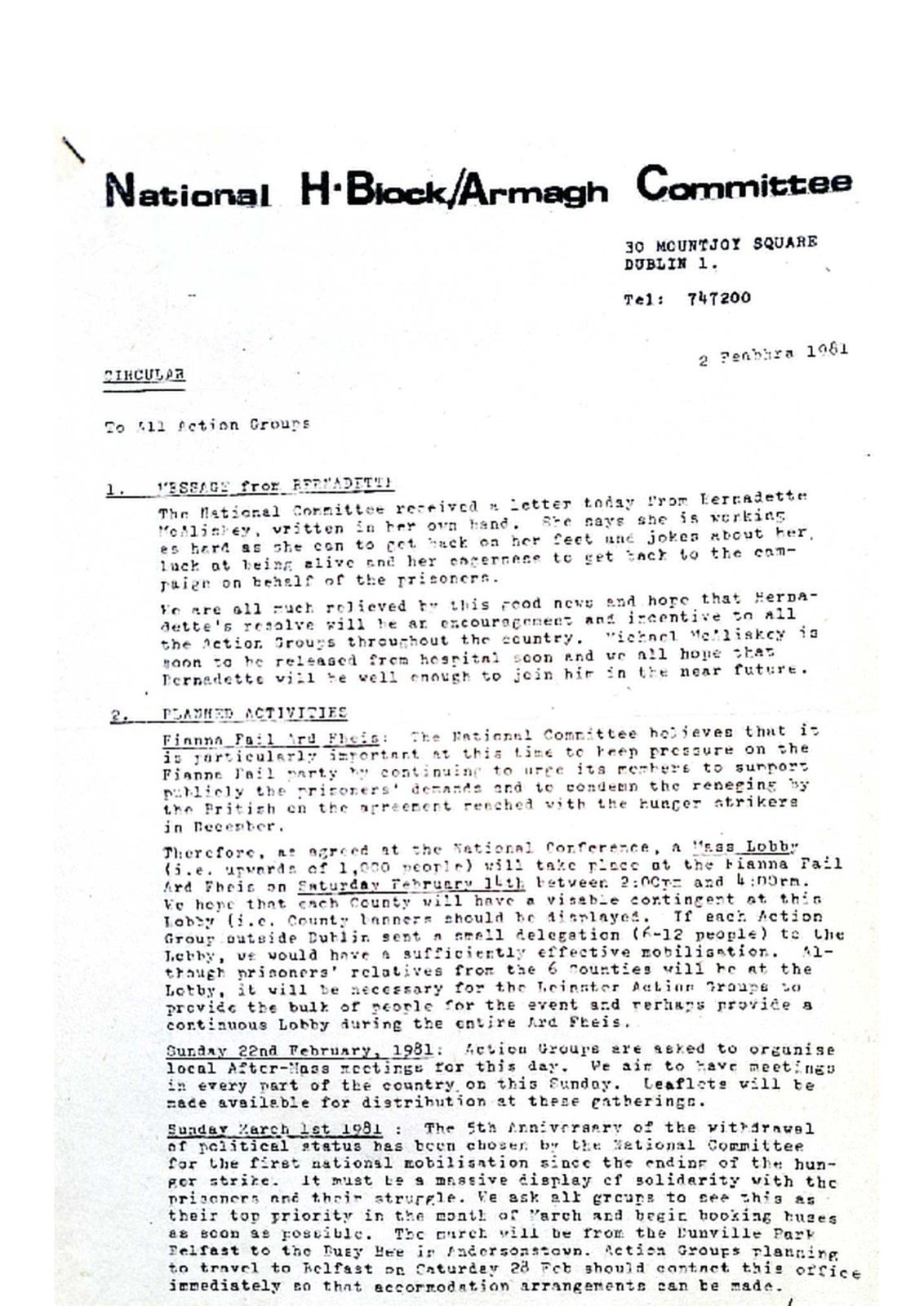 National H-Block/Armagh Committee Circular (1981) — National H-Block / Armagh Committee