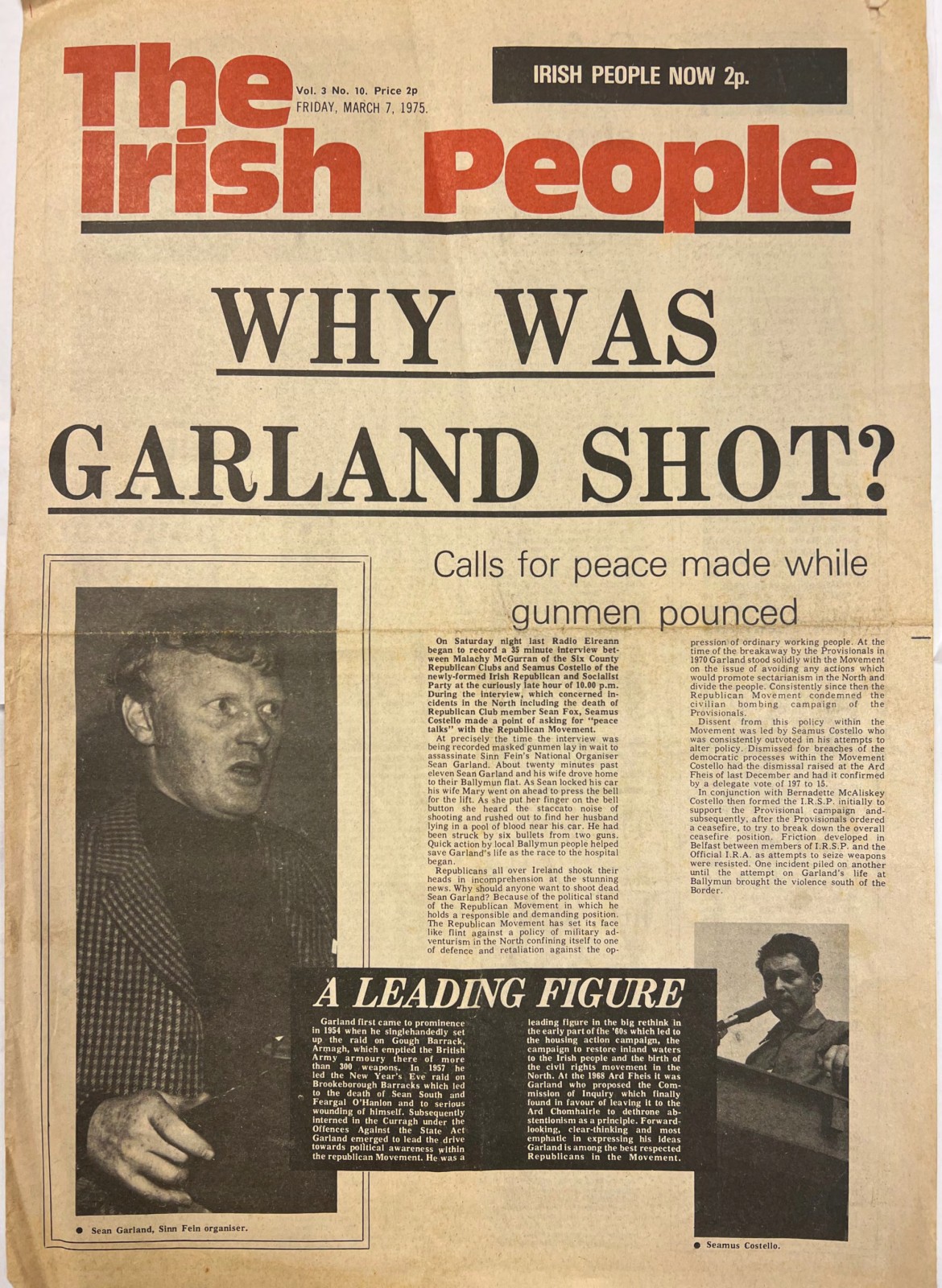 The Irish People, newspaper of Official Sinn Féin on the then recent shooting of Seán Garland.