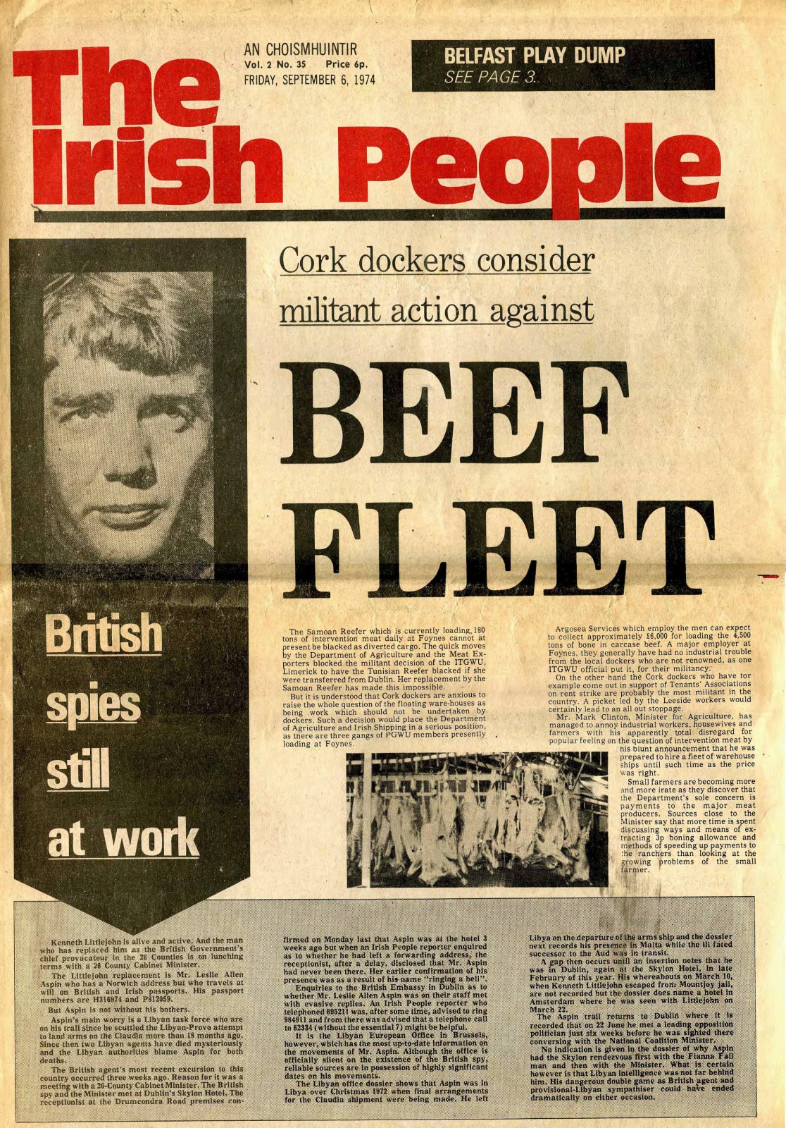 "British Spies Still at Work" "Cork Dockers Consider Action against Beef Fleet"