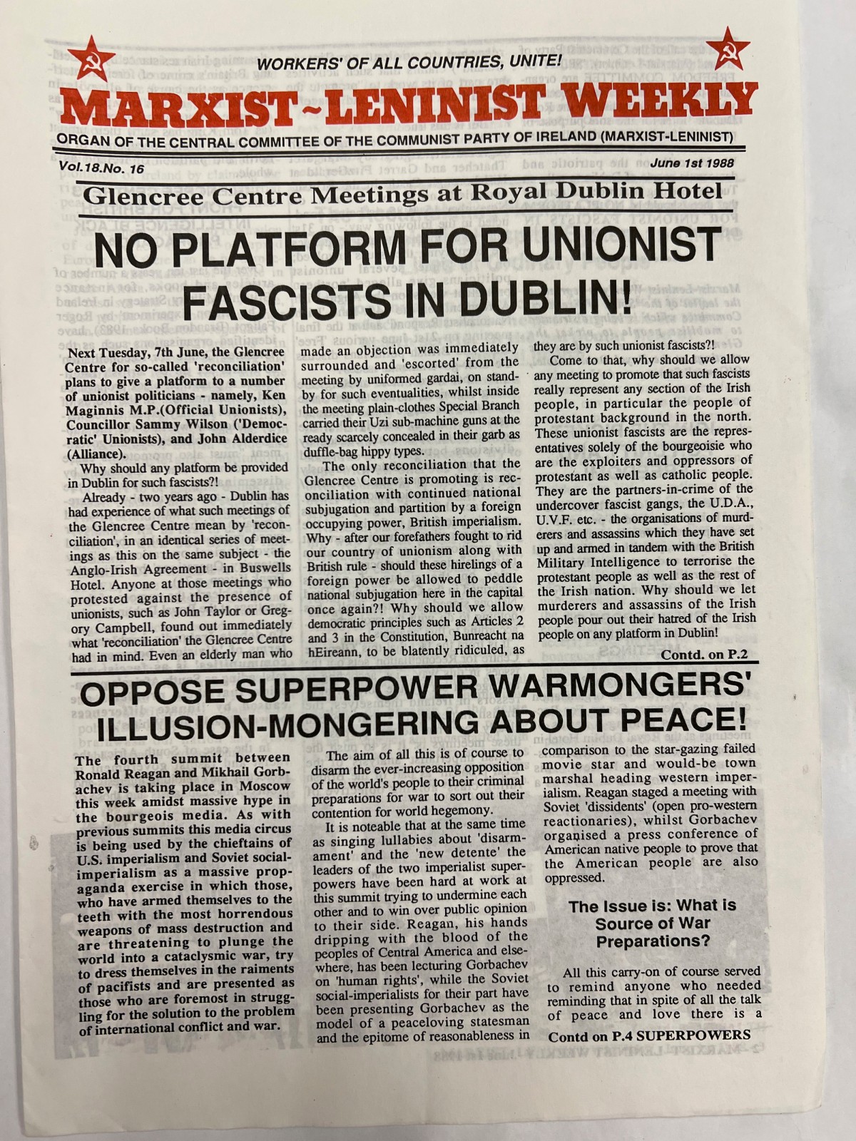 1st June 1988, from the Communist Party of Ireland (Marxist-Leninist).