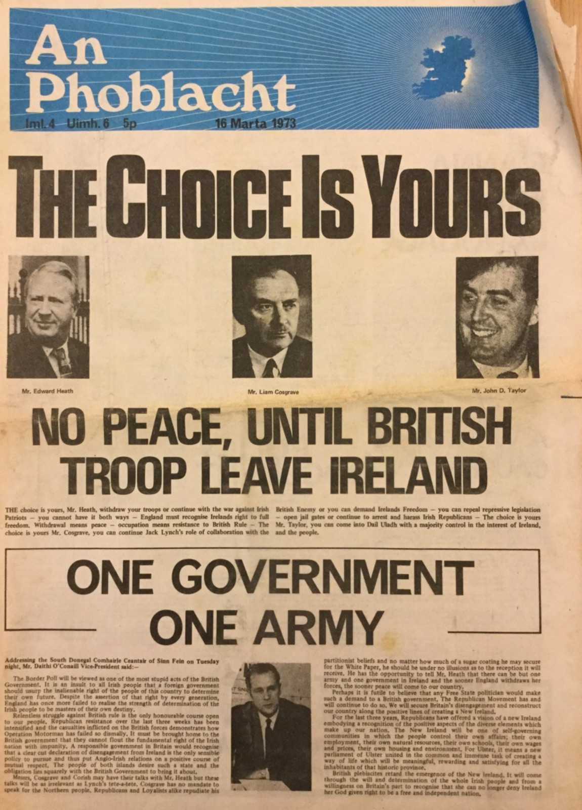 An Phoblacht: "The Choice is Yours – No Peace, Until British Troops Leave Ireland"