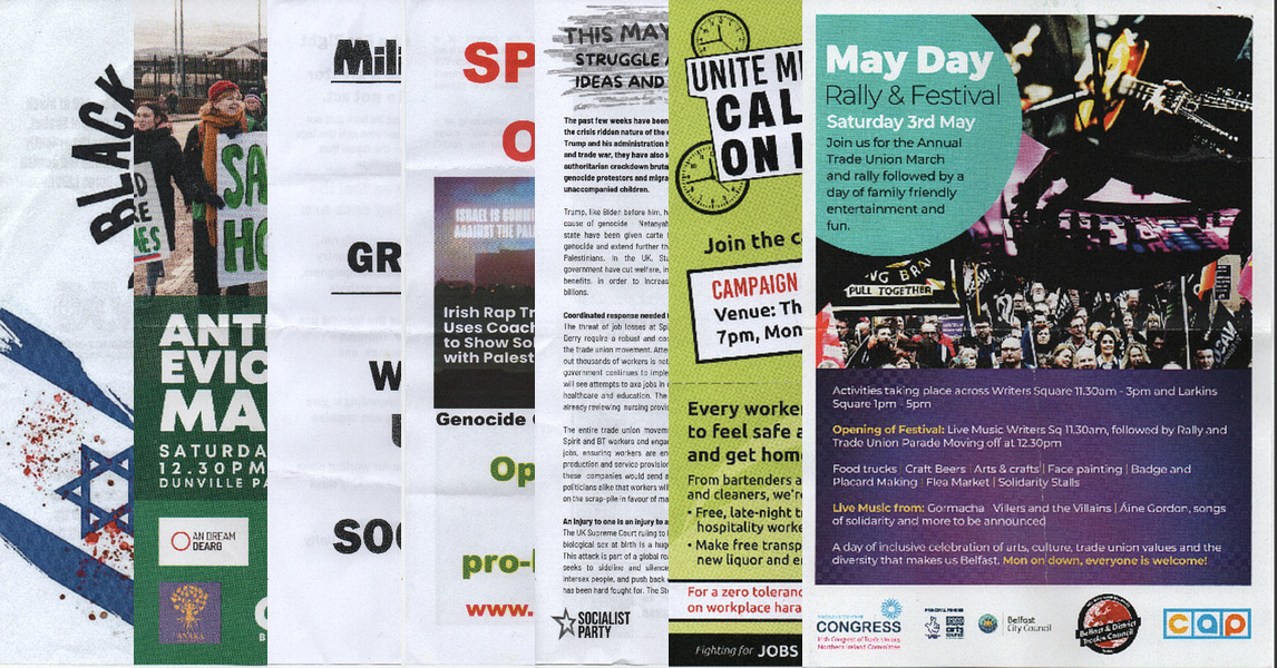 We've just added a number of leaflets from this year's May Day march and rally in Belfast to the Snapshots of Political Action project. Along with trade union material, there are leaflets from Socialist Democracy, the Socialist Party, Militant Left, CATU and a local BDS campaign. There's an unsurprising emphasis on Palestine in the material. Snapshots of Political Action is a joint project of the Irish Left…