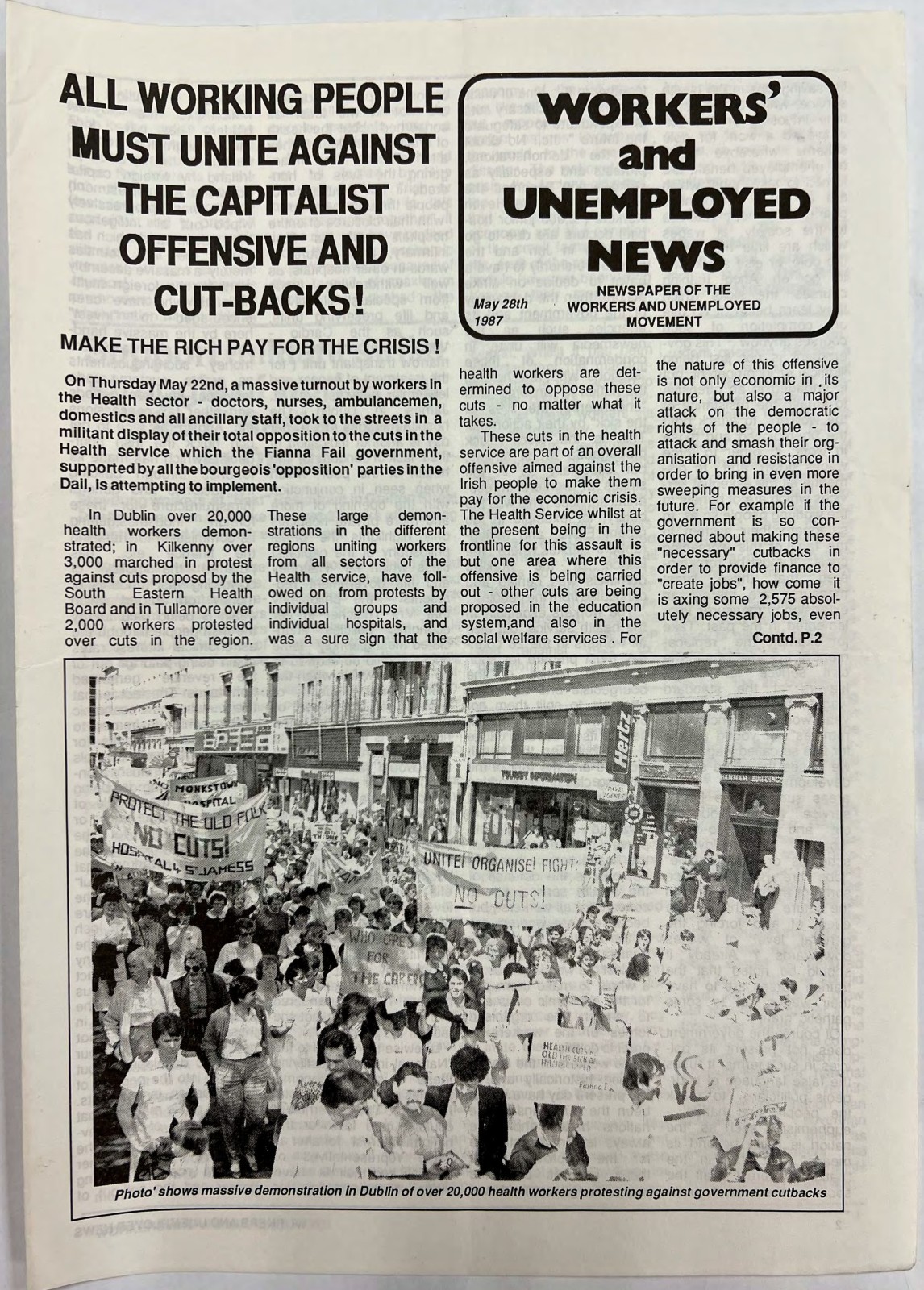 Workers' and Unemployed News, from the Workers and Unemployed Movement (a campaign of the Communist Party of Ireland (Marxist-Leninist)).