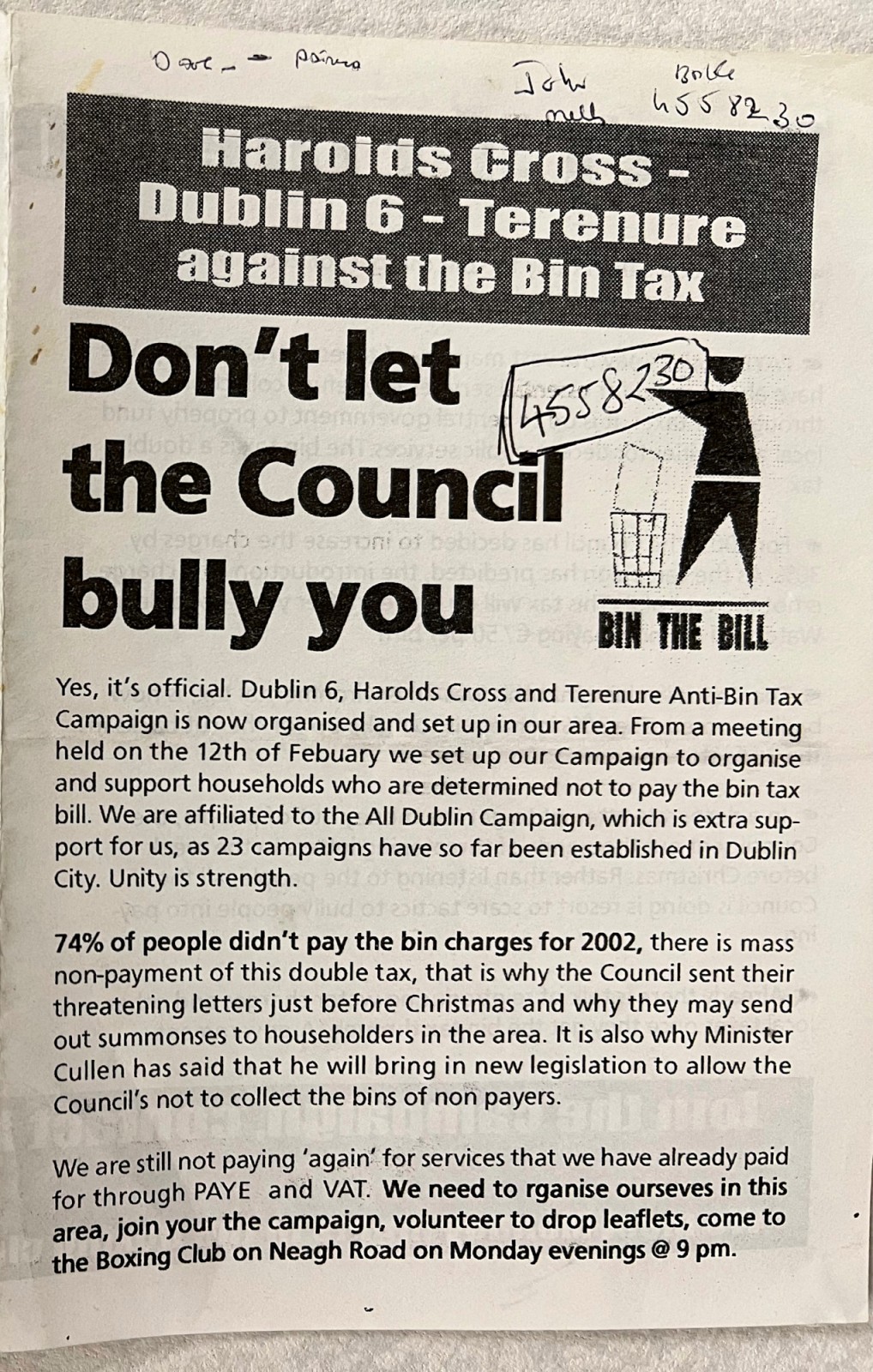 From the anti-bin tax campaign in Dublin in the early 2000s.
