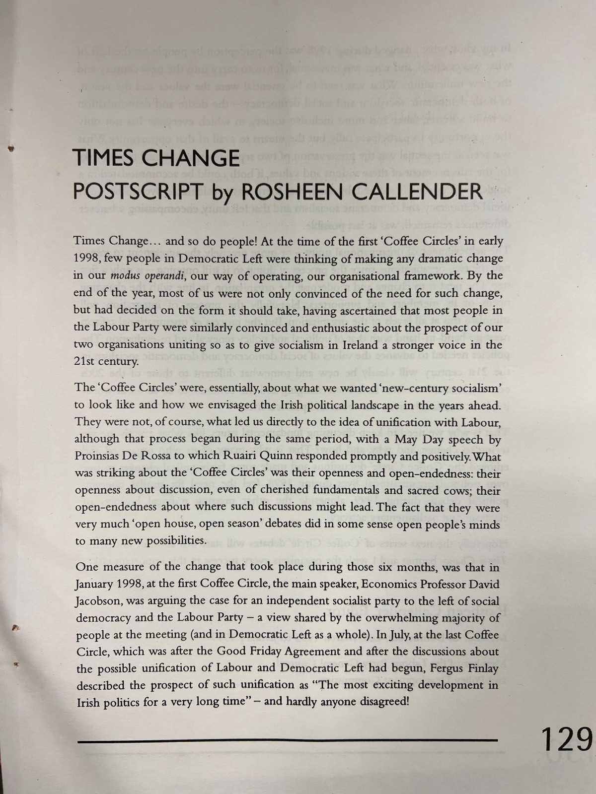 The Coffee Circle Papers: Postscript - Times Change (1999) — Democratic Left, Labour