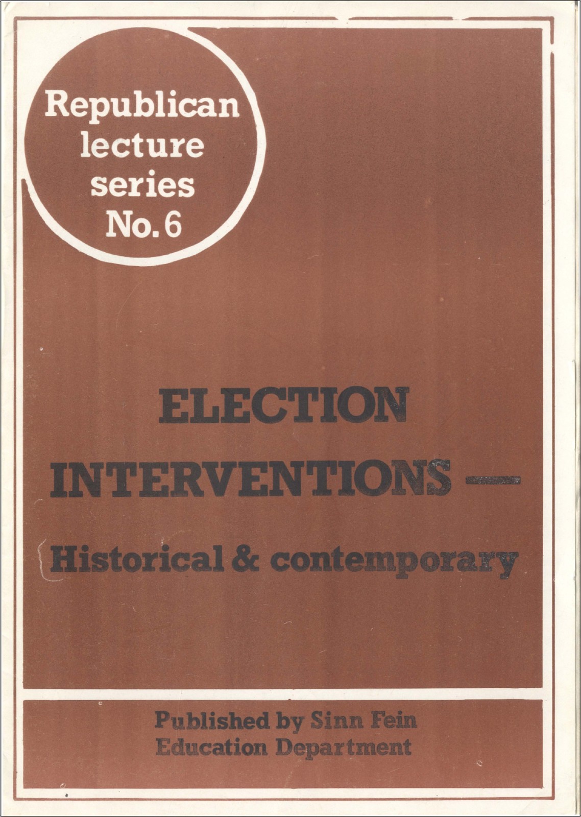 "Election Interventions—Historical & Contemporary" (Republican Lecture Series, Number 6), from the Sinn Féin Education Department, circa 1982.