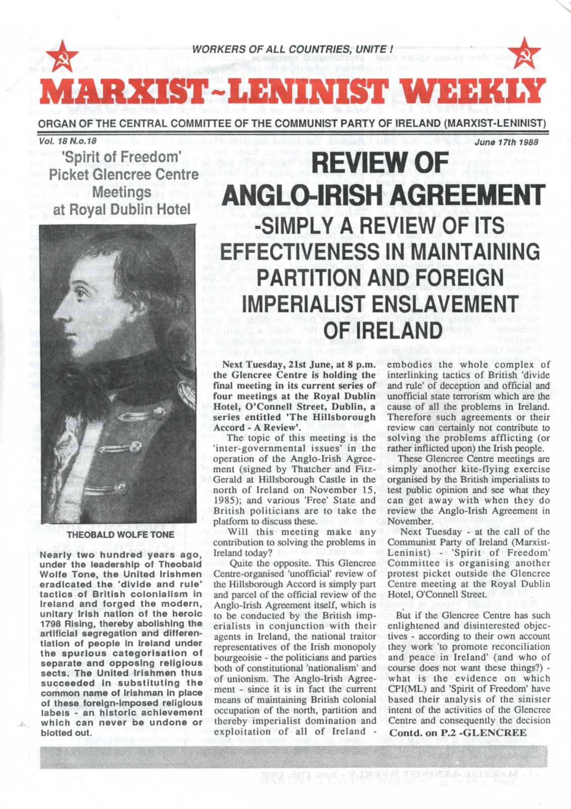 Marxist-Leninist Weekly, Vol. 18, No. 18 (1988) — Communist Party of Ireland (Marxist-Leninist)