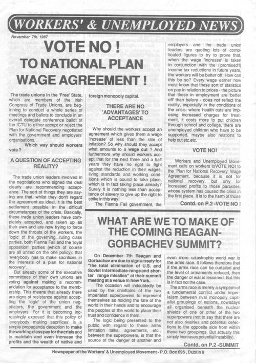 Workers' and Unemployed News, November 7th, 1987 (1987) — Workers and Unemployed Movement