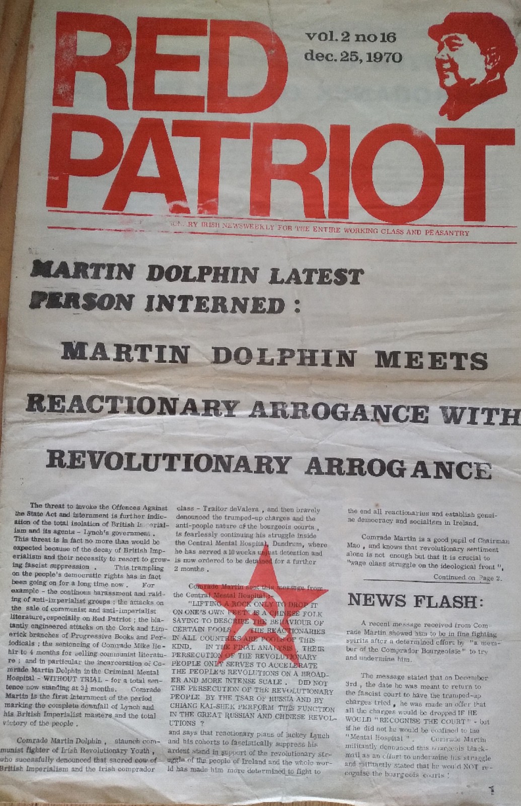 Red Patriot, Vol. 2, No. 16, from the Communist Party of Ireland (Marxist-Leninist), December 1970.