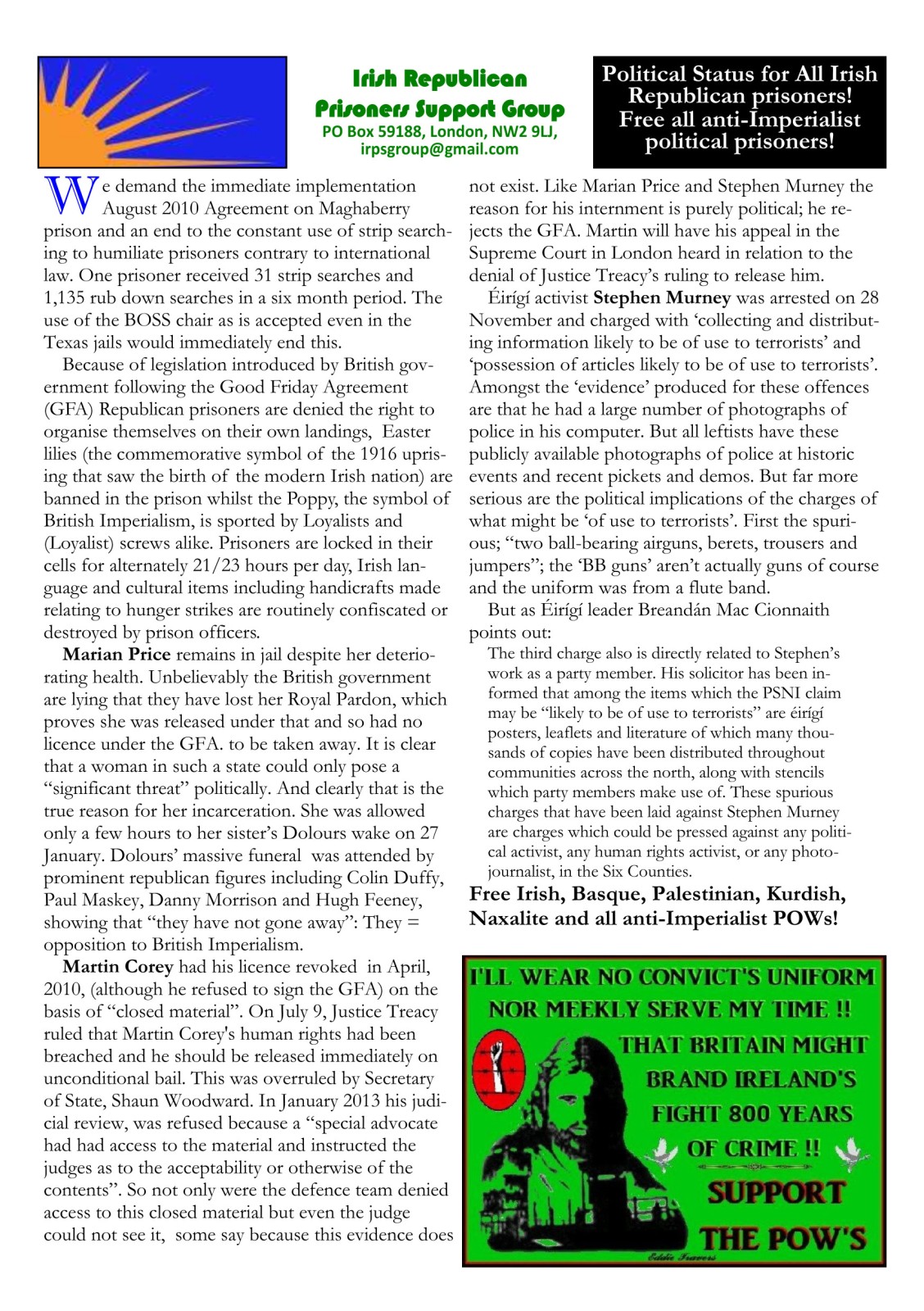 Political Status for All Irish Republican Prisoners! Free All Anti-Imperialist political Prisoners! (2013) — Irish Republican Prisoners Support Group