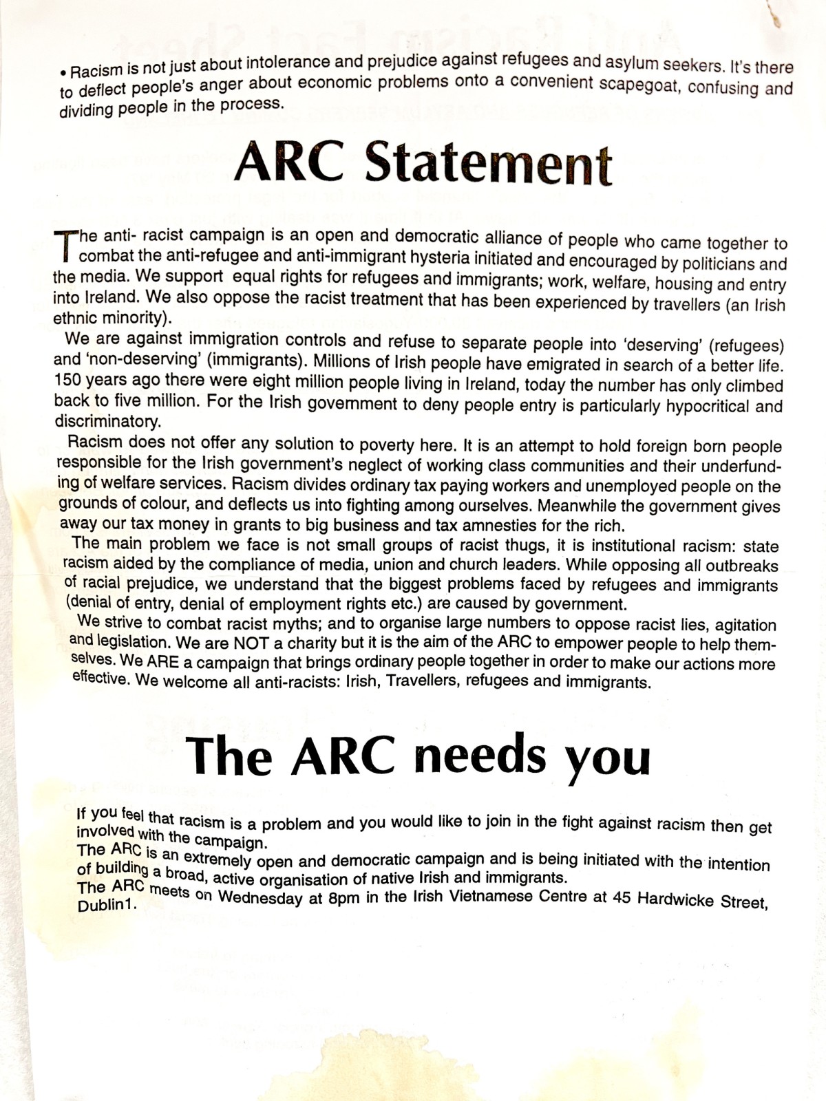 ARC Statement, from the Anti-Racism Campaign (ARC), 1998 c.