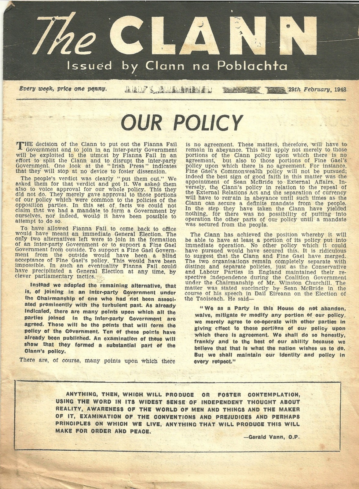 The Clann, 29th February 1948 (1948) — Clann na Poblachta