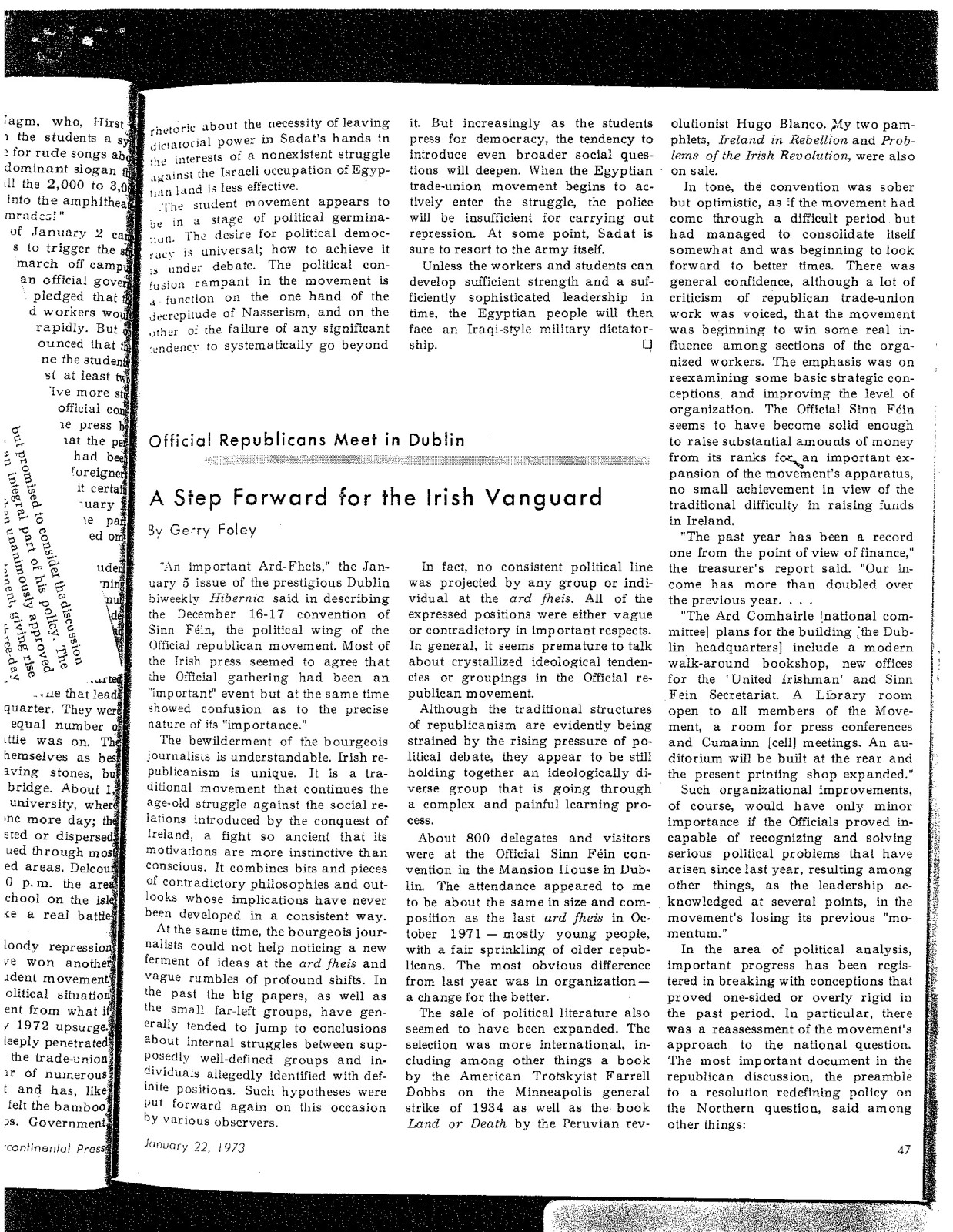 An article by Gerry Foley on the Official Republican movement for Intercontinental Press, magazine of the Fourth International.