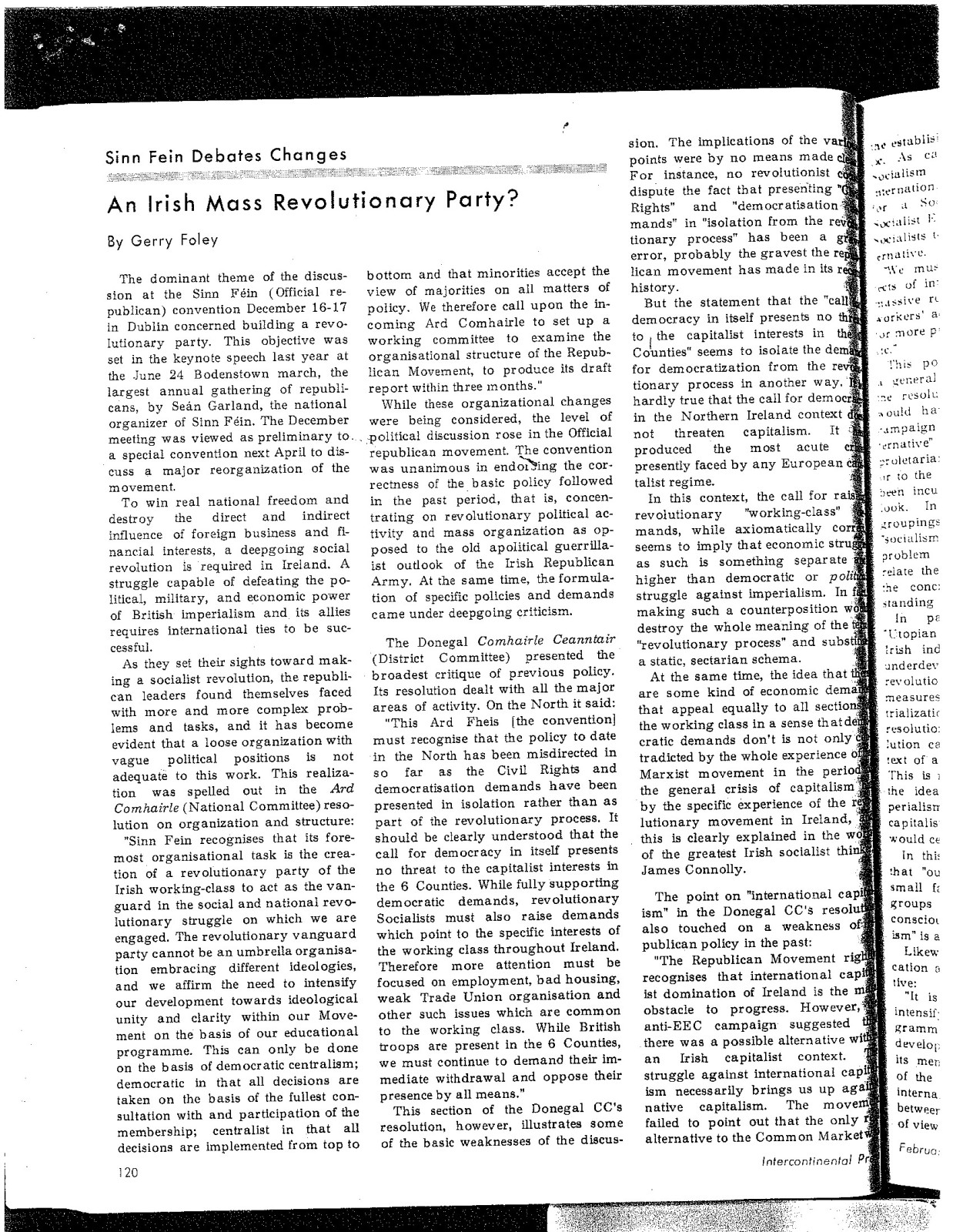 "Sinn Féin Debates Changes: An Irish Mass Revolutionary Party?"