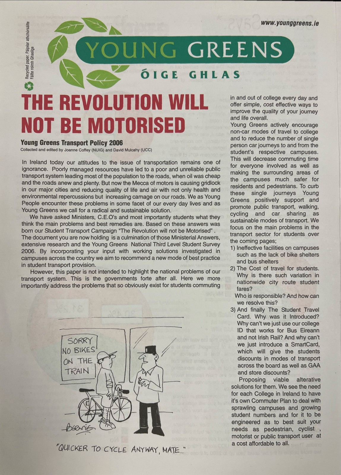 The Revolution Will Not Be Motorised: Young Greens Transport Policy 2006