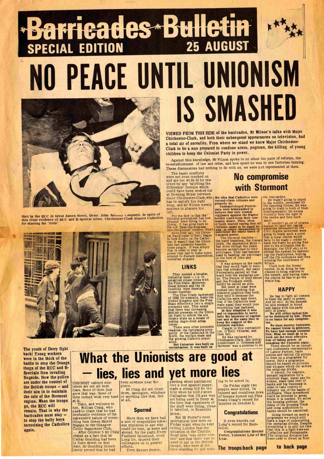 Barricades Bulletin, from the Derry Labour Party Young Socialists in the aftermath of the "Battle of the Bogside".