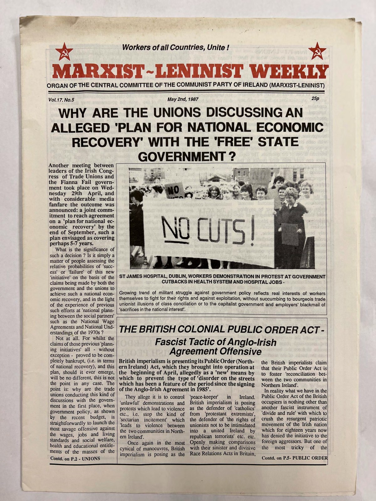 Marxist-Leninist Weekly, Vol 17, No. 5 (1987) — Communist Party of Ireland (Marxist-Leninist)