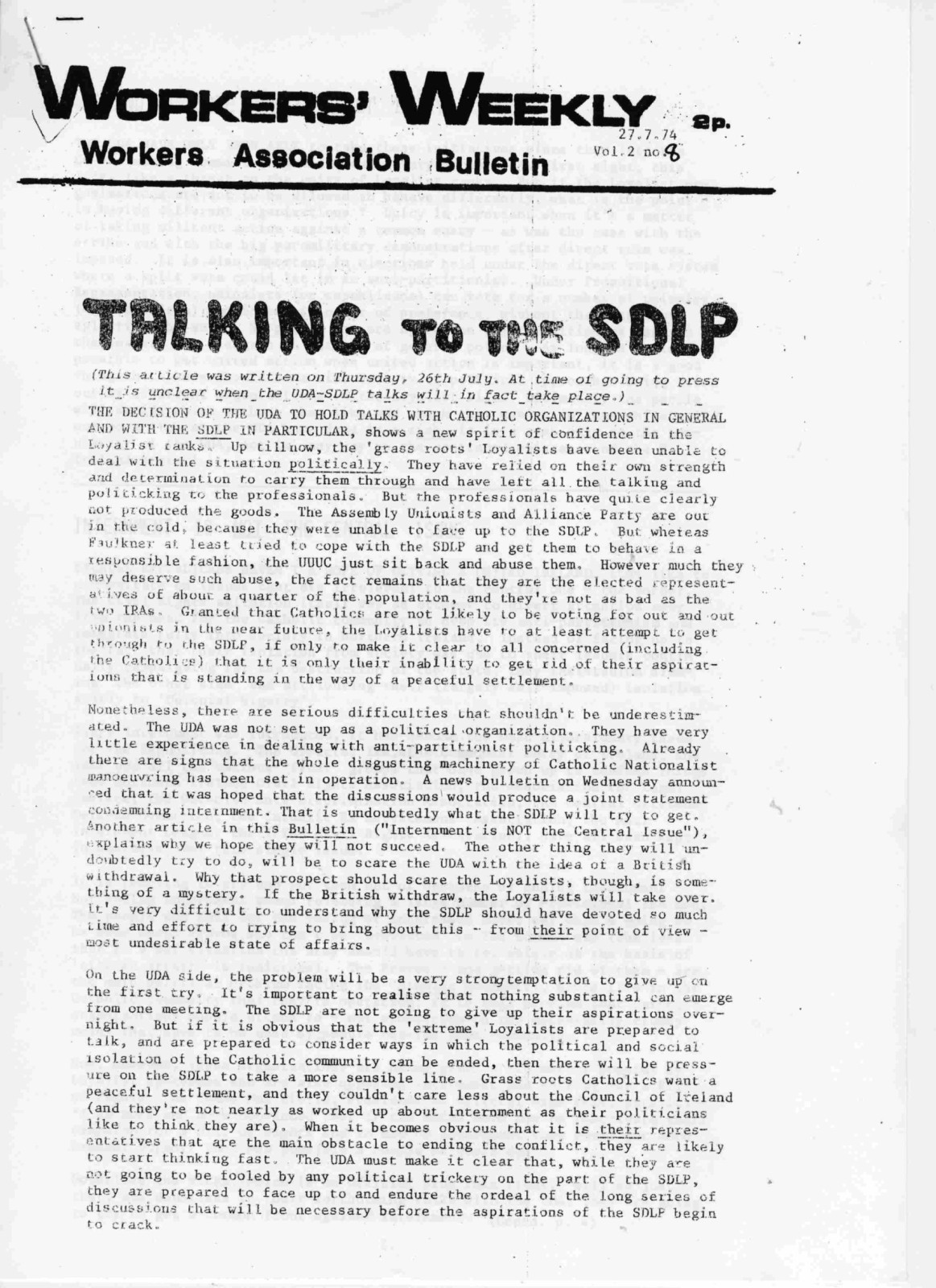 Workers Weekly was published by the Workers' Association (associated with the British & Irish Communist Organisation).