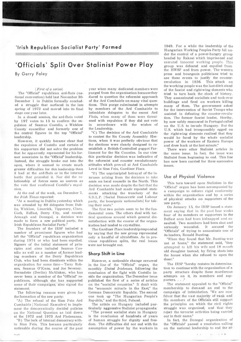 #IrishLeftArchive #OfficialSinnFéin #IntercontinentalPress #FourthInternational #OTD