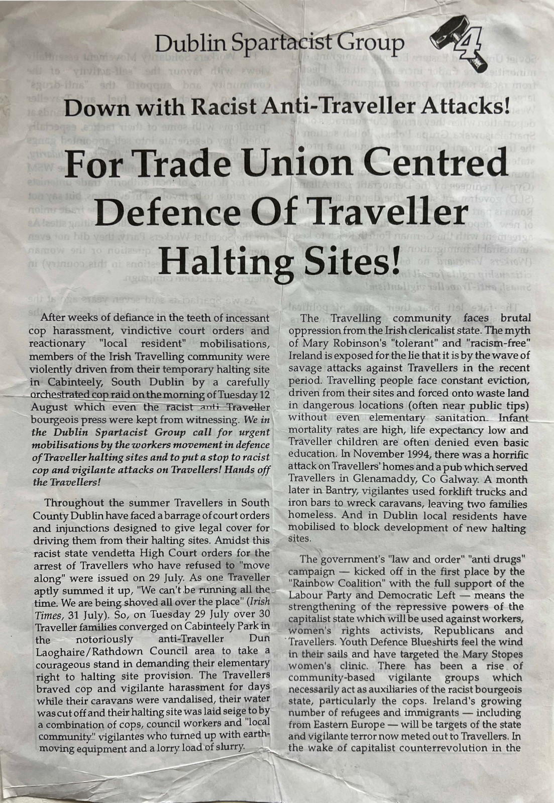 A leaflet from the Dublin Spartacist Group on #TravellersRights