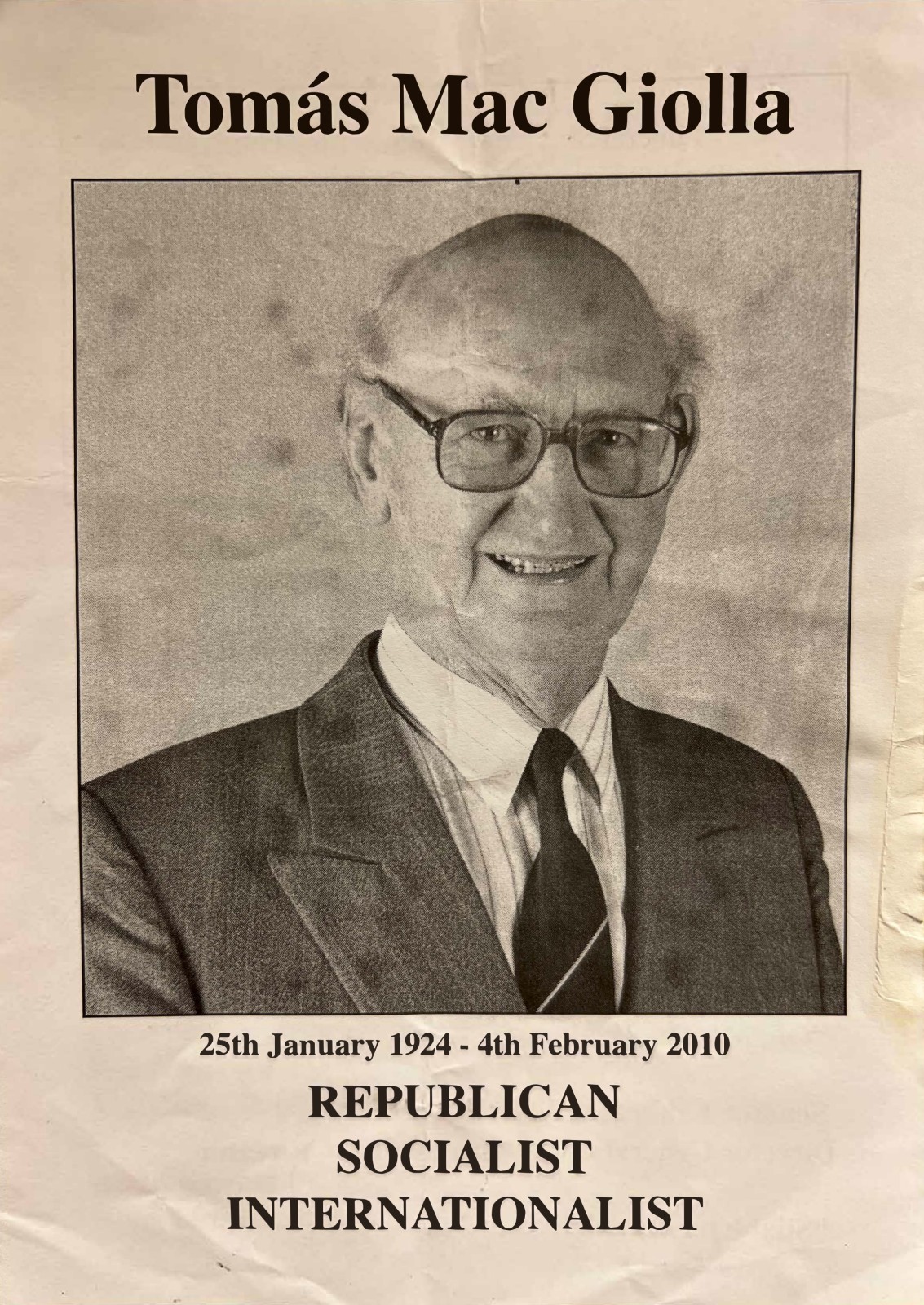 Produced by the Workers' Party after former party President Mac Giolla's death in 2010.