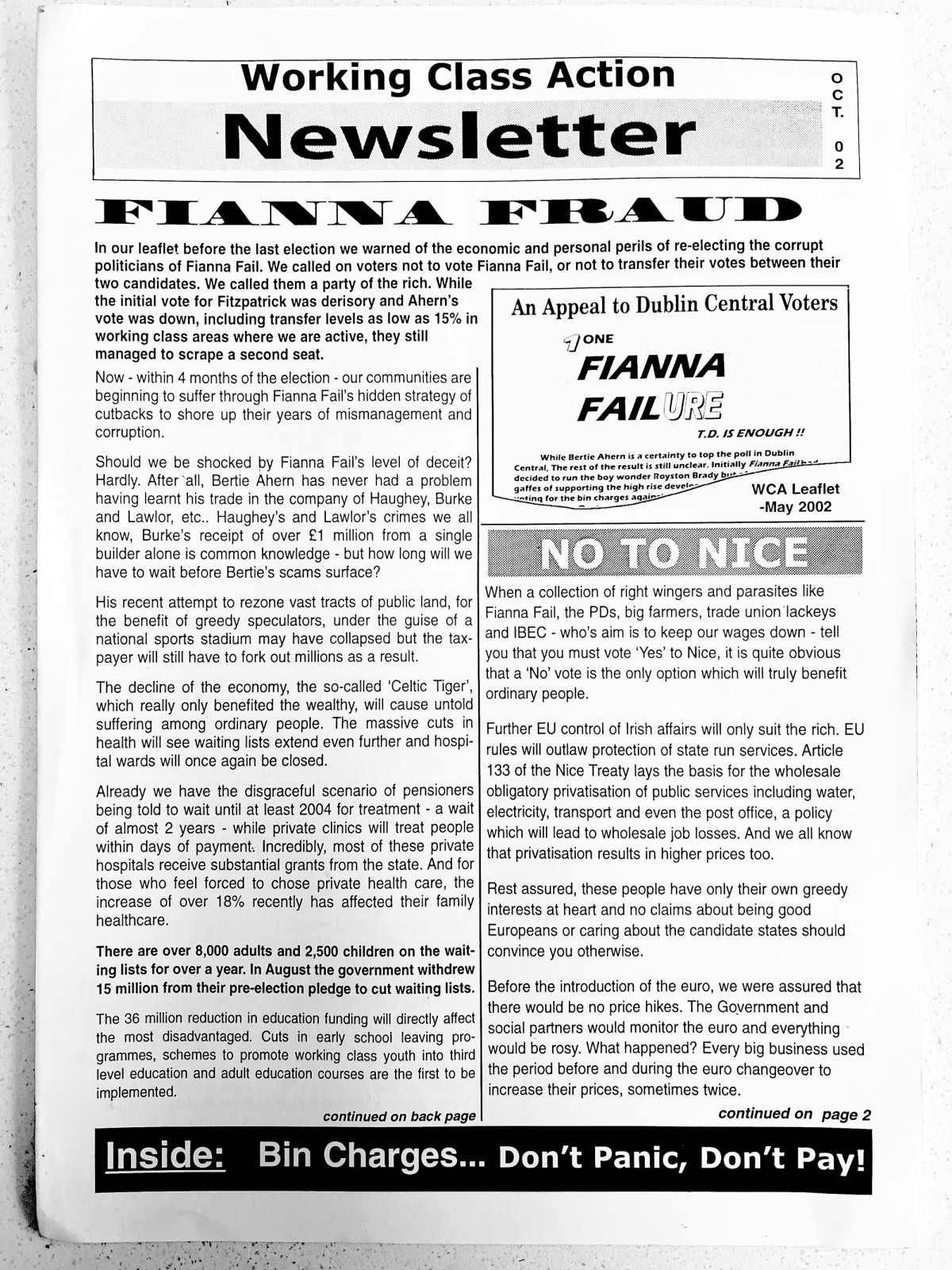 Working Class Action Newsletter, October 2002 on the second Nice Treaty referendum.