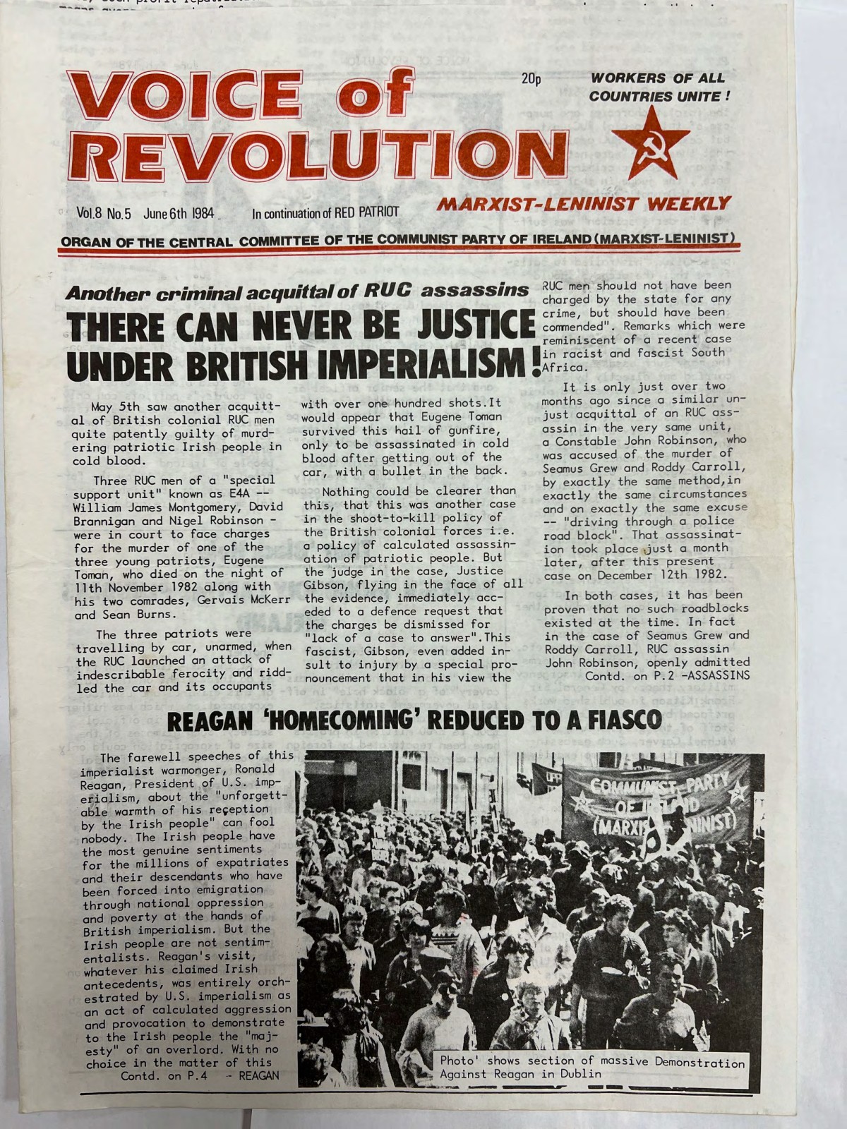 Voice of Revolution (Marxist–Leninist Weekly), Vol. 8, No. 5, 6th June 1984. From the Communist Party of Ireland (Marxist-Leninist).