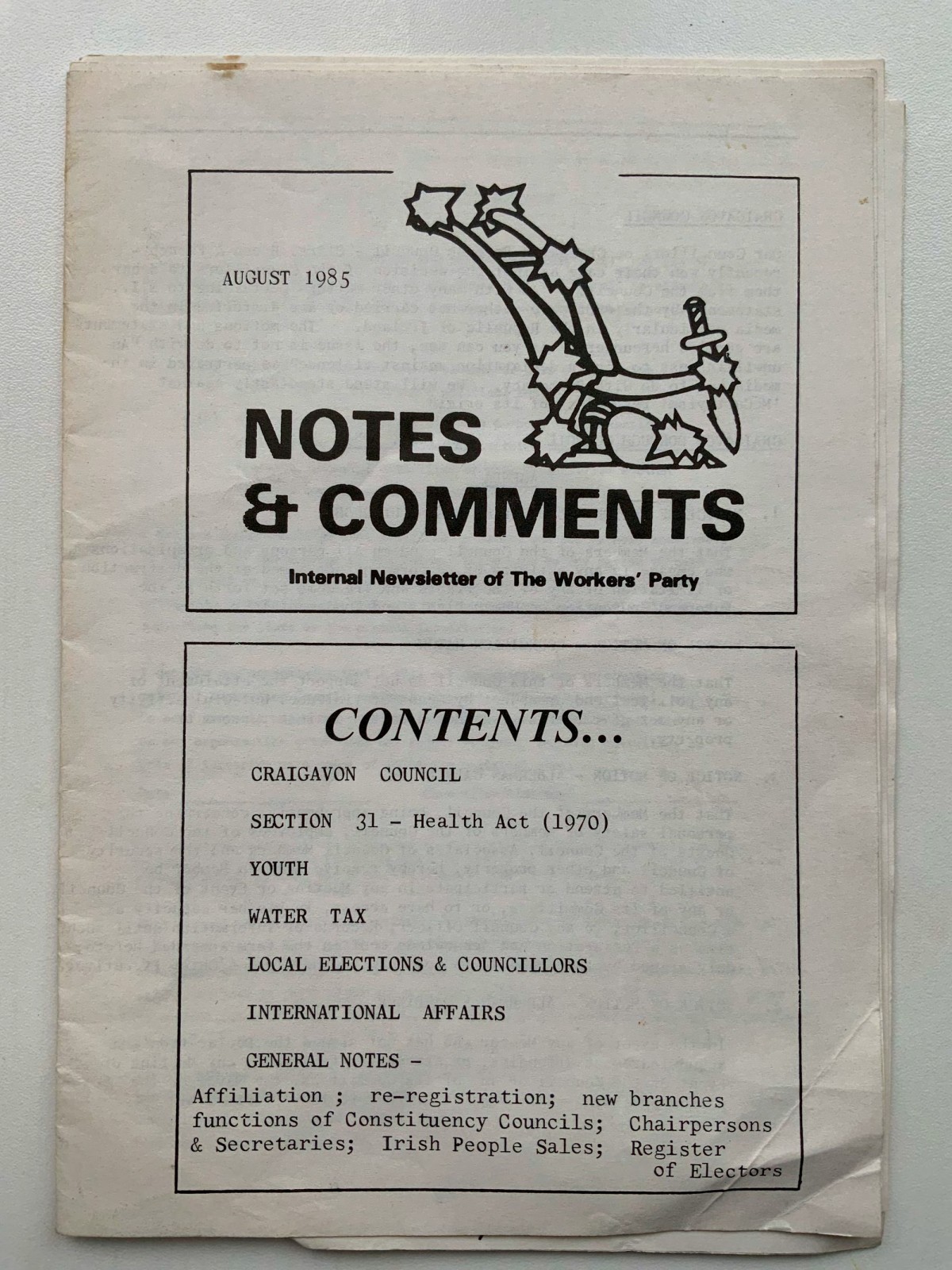 Notes & Comments, August 1985 (1985) — The Workers' Party