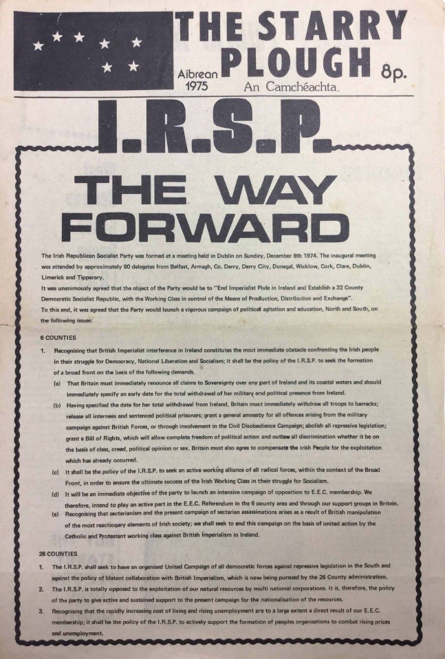 #OnThisDay 8th of December 1974, The Irish Republican Socialist Party (IRSP) was formed at a meeting in Dublin by former members of Official Sinn Féin.