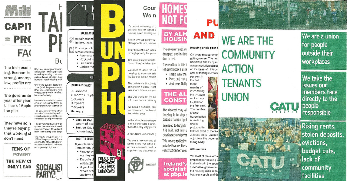 Leaflets distributed at the housing march organised by CATU last Saturday, 5th July: https://www.leftarchive.ie/demonstration/7801/