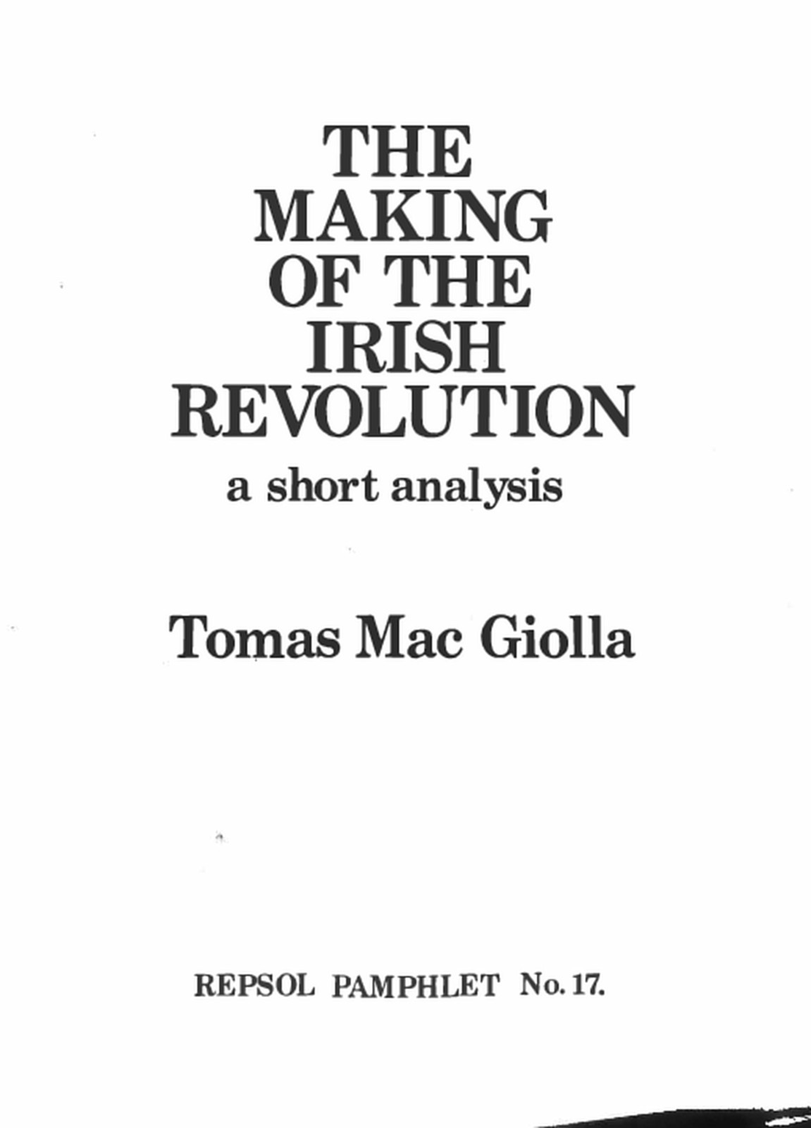By Tomás MacGiolla, circa 1975. Published by Official Sinn Féin as part of their Repsol Pamphlets series.