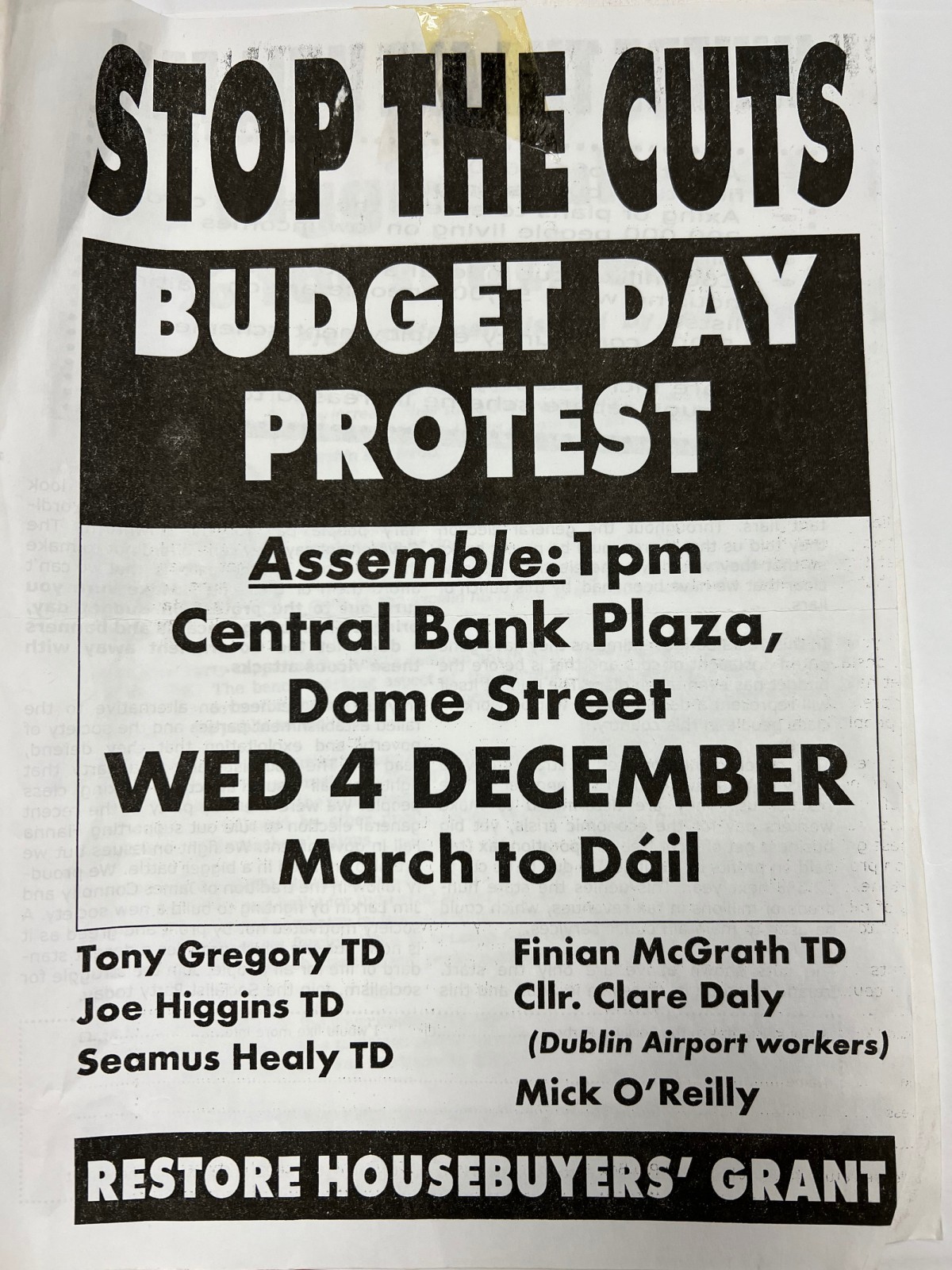 A leaflet from the Socialist Party for a march in Dublin on budget day in 2002.