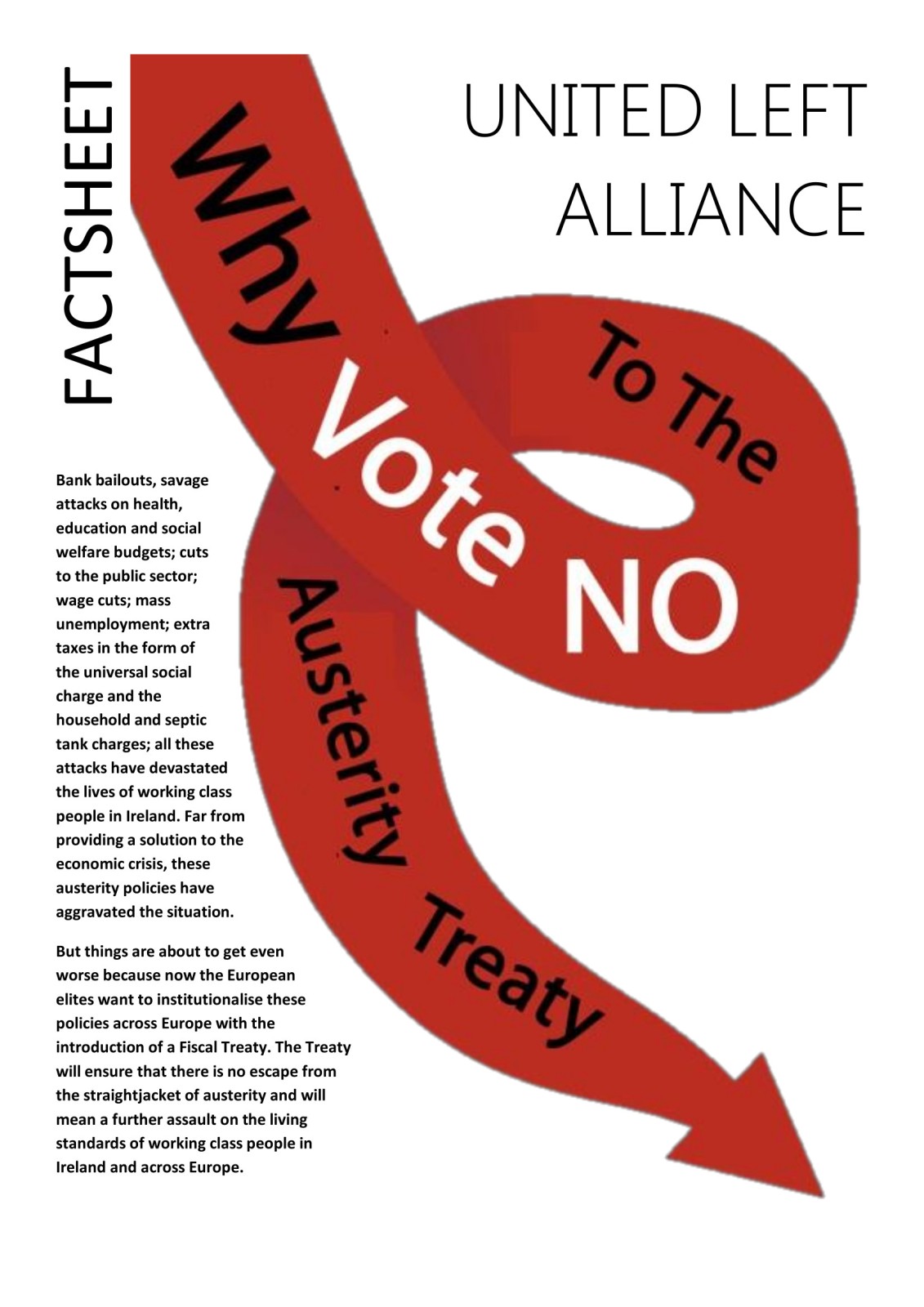Factsheet: Why Vote No to the Austerity Treaty (2012) — United Left Alliance